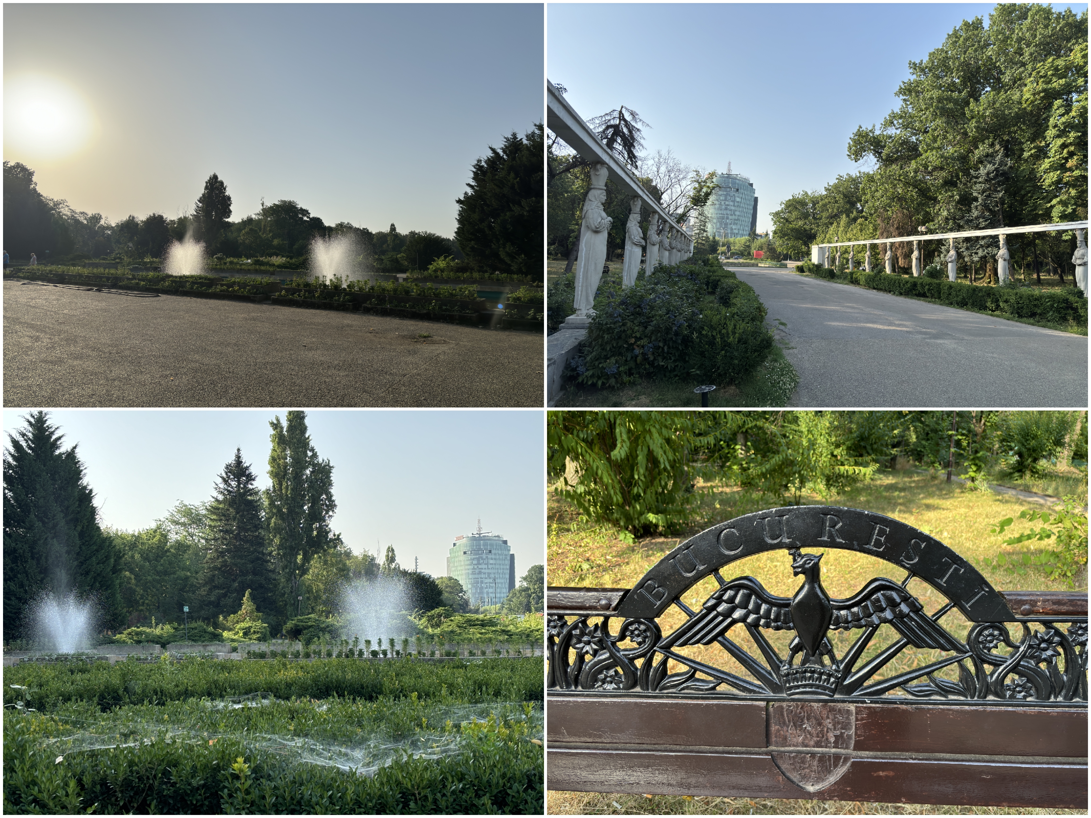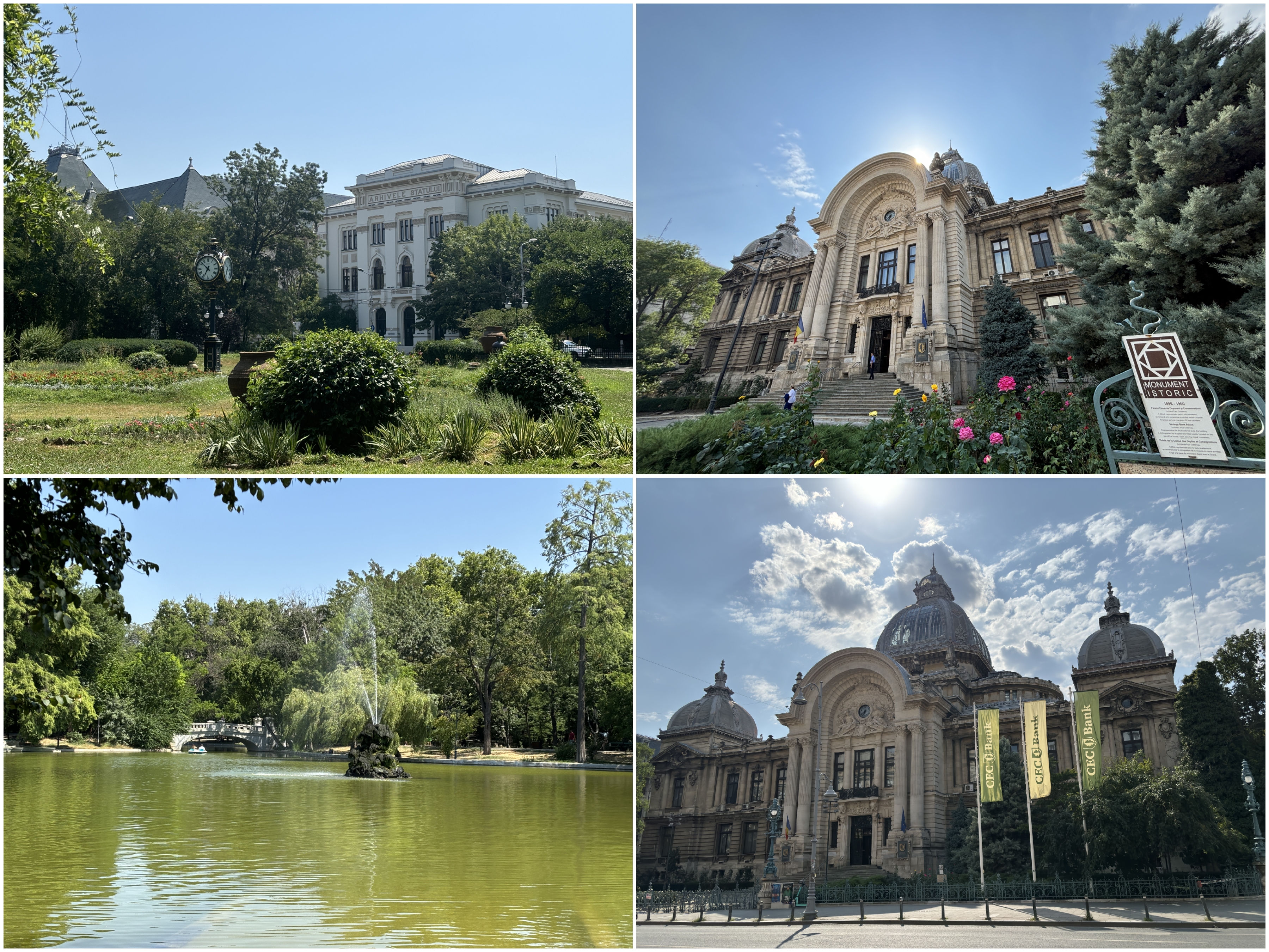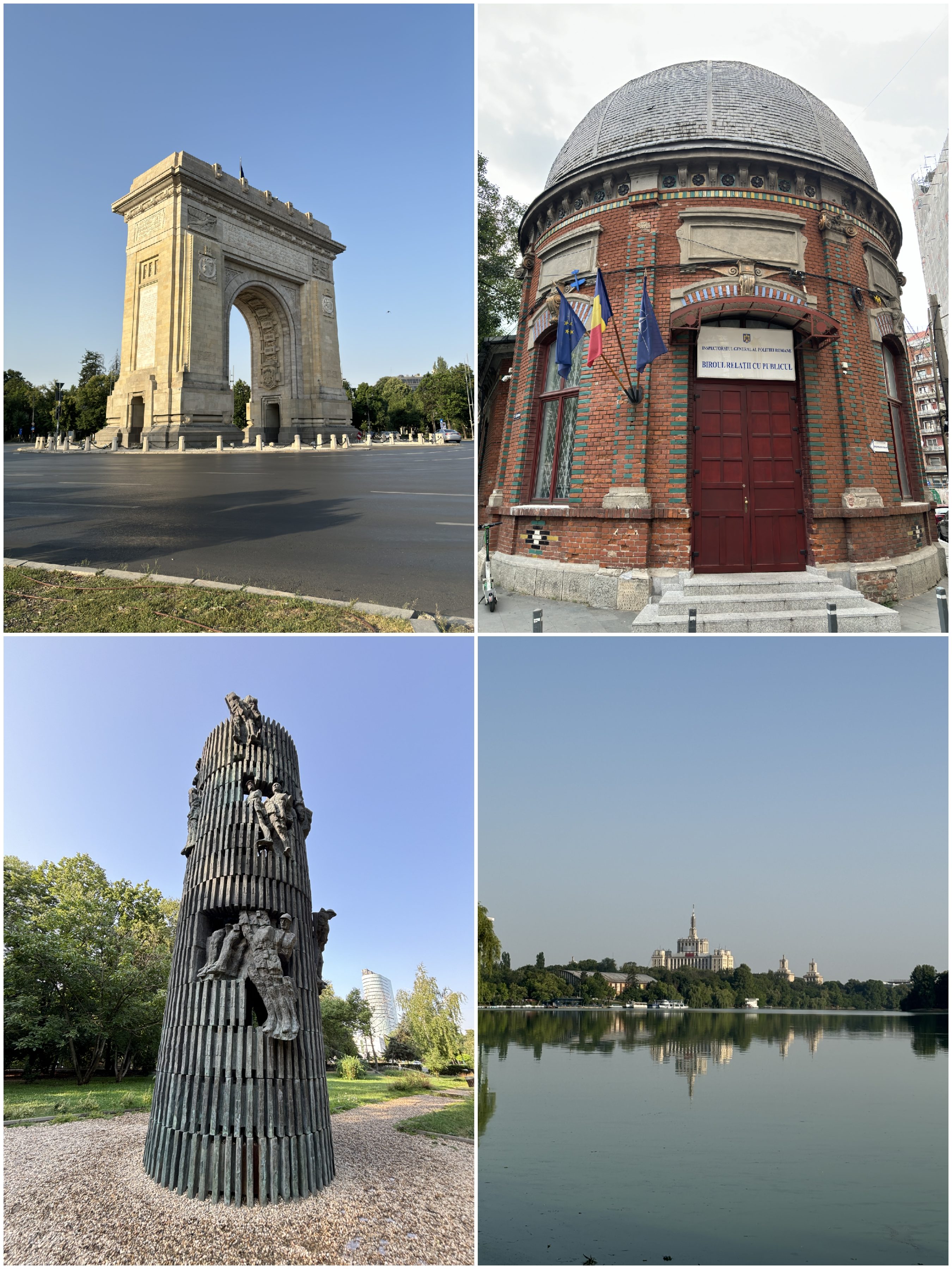 Druhý den jsme vyrazily hned ráno, než přijde to slíbené vedro. Předpověď hlásala krásných 42 stupňů. Hned ráno bereme busík a jedeme do parku krále Michala I., Parcul „Regele Mihai I“, zašly si k jezeru Lacul Herăstrău a odtud k vítěznému oblouku Arcul de Triumf. Jedná se o 27metrový žulový oblouk s vnitřními schody a výhledem, postavený jako památník vojákům z první světové války. Výstup jsme nezvažovaly, a proto jsme na něj mrkly hned ráno. Další zastávka byla v parku Parcul „Kiseleff“ a na památník Monumentul Infanteriei Române. U muzea přírodních věd, Muzeul Național de Istorie Naturală Grigore Antipa, jsme zkoukly dinosaury venku před vchodem. Nakonec se svezly ještě pár zastávek ke královskému paláci Palatul Regal din București, kde je teď muzeum a odtud se vydaly k ikonické neoklasicistní koncertní síni, která byla otevřena v roce 1888. Aktuálně je sídlem filharmonického orchestru George Enesca. Jedná se o Ateneul Român. Na univerzitním náměstí Piața Universității jsme přestoupili na správný autobus k ubytování.