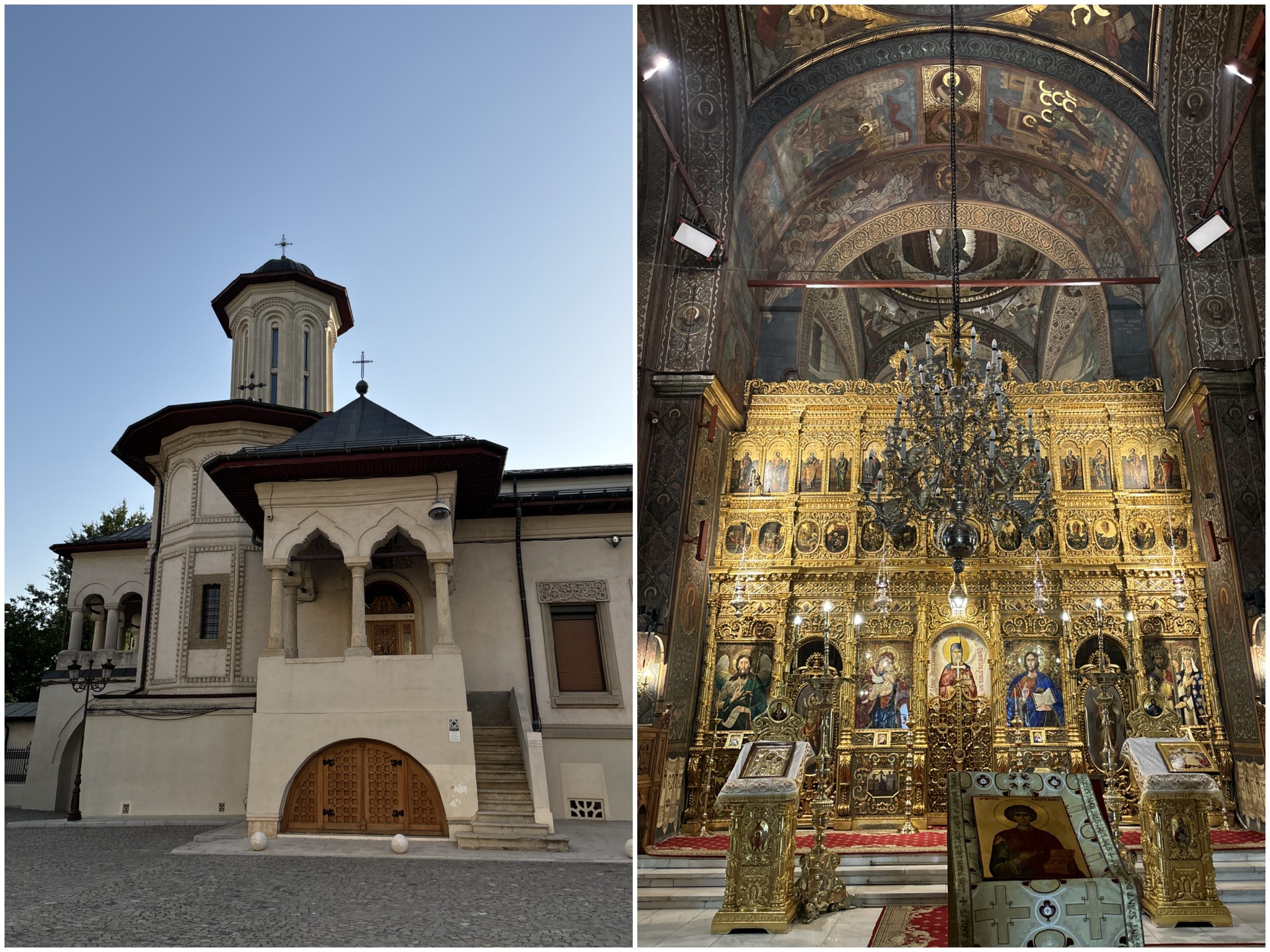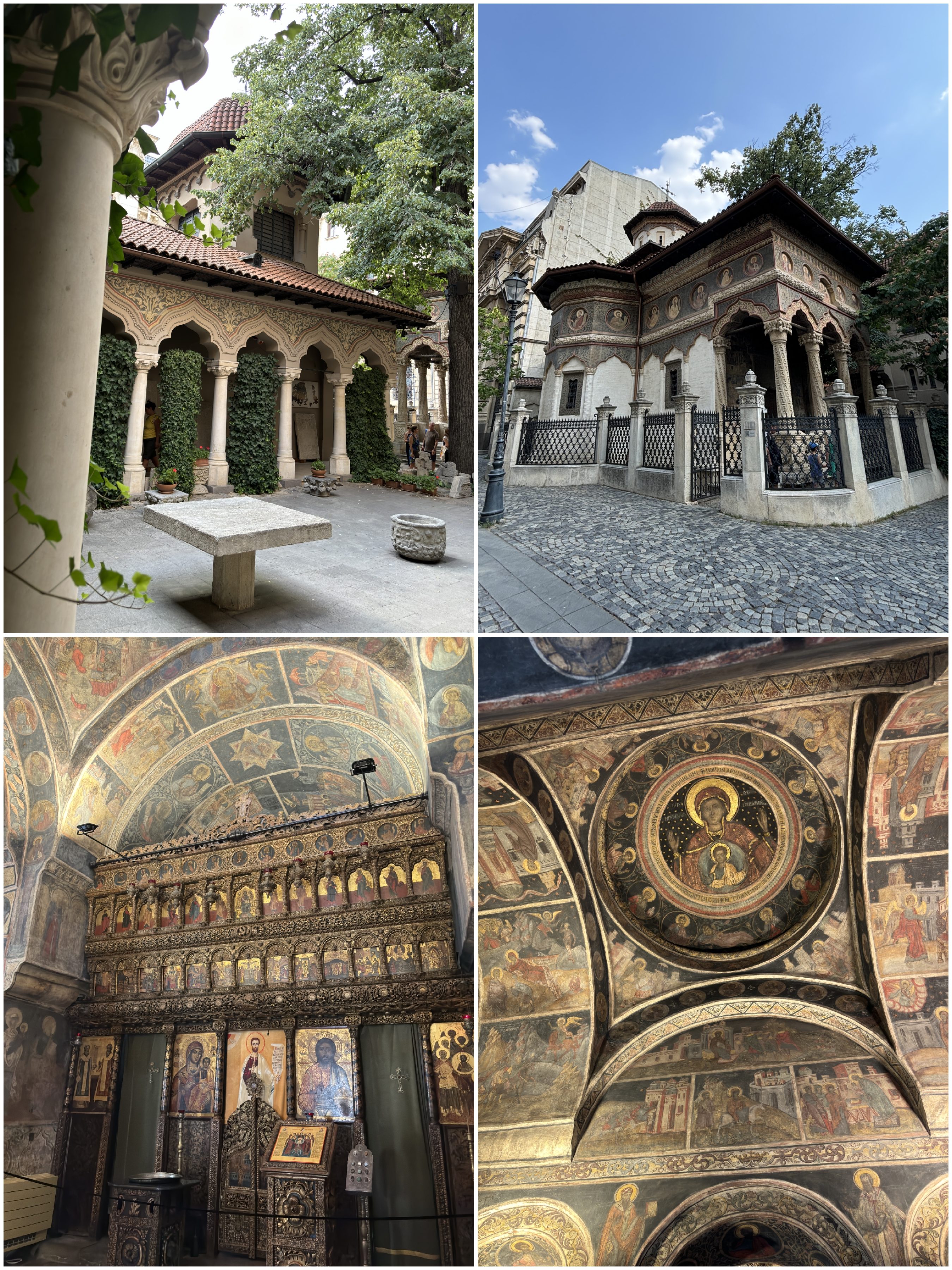 Když se vydáme do klikatých uliček od hlavní třídy dále do centra, vynoří se pře námi další pravoslavný kostel z roku 1724. Byl částečně přestavěn na začátku 20. století po zemětřesení. Vstupné se neplatí a tak nahlédněte. Biserica Mănăstirii „Stavropoleos“ vás přivítá krásnými malbami, zdobeným pozlaceným oltářem a malou zahradou s podloubím, které má připomínat křížovou chodbu. Určitě koukejte vzhůru, fasády domů jsou velmi krásně zdobené. Mě se líbila stavba Palatul Pinacotecii, ale určitě bych našla i další, jen jsem se nepodívala, kde přesně to bylo a zda to mělo nějaký název.