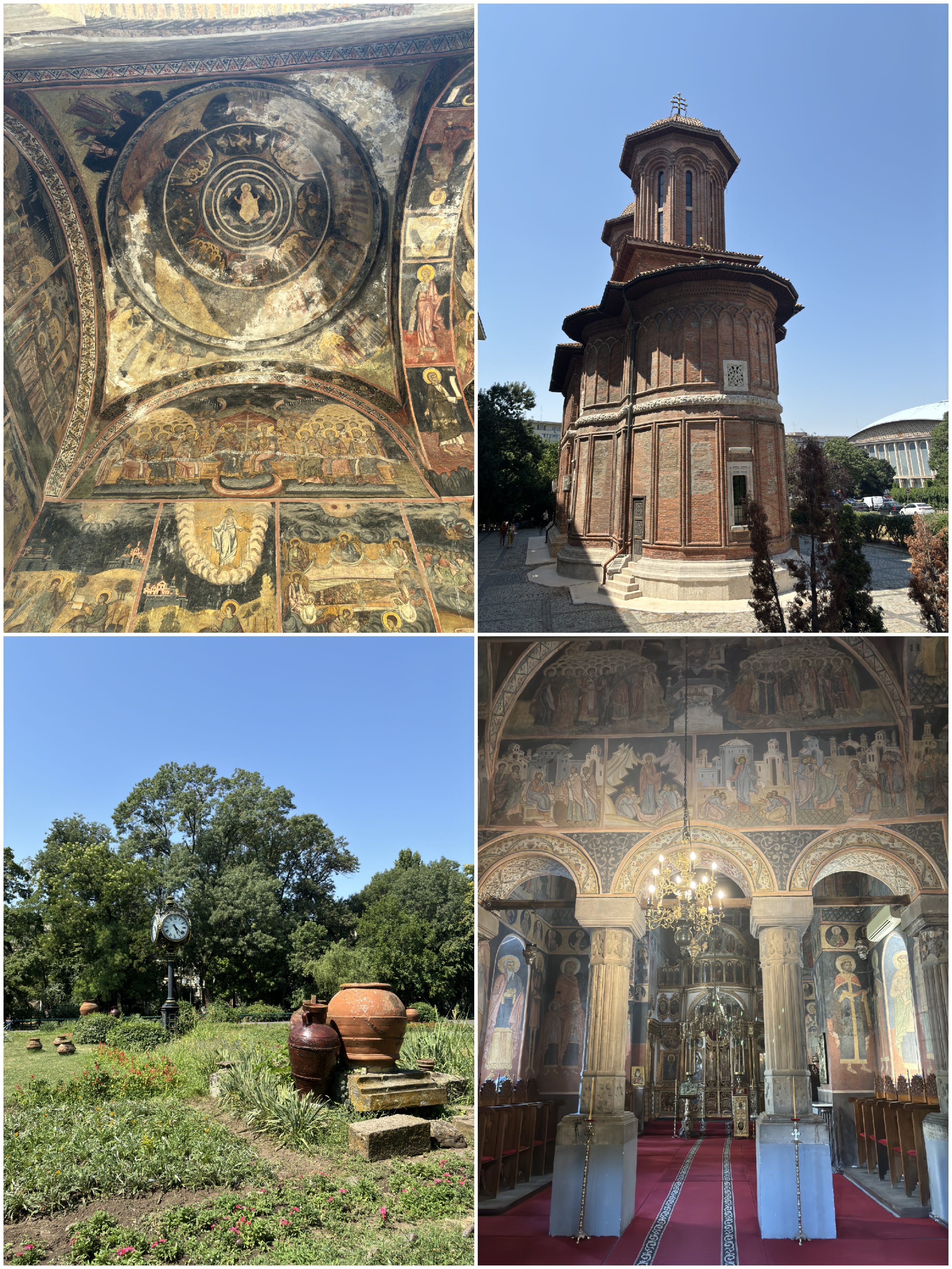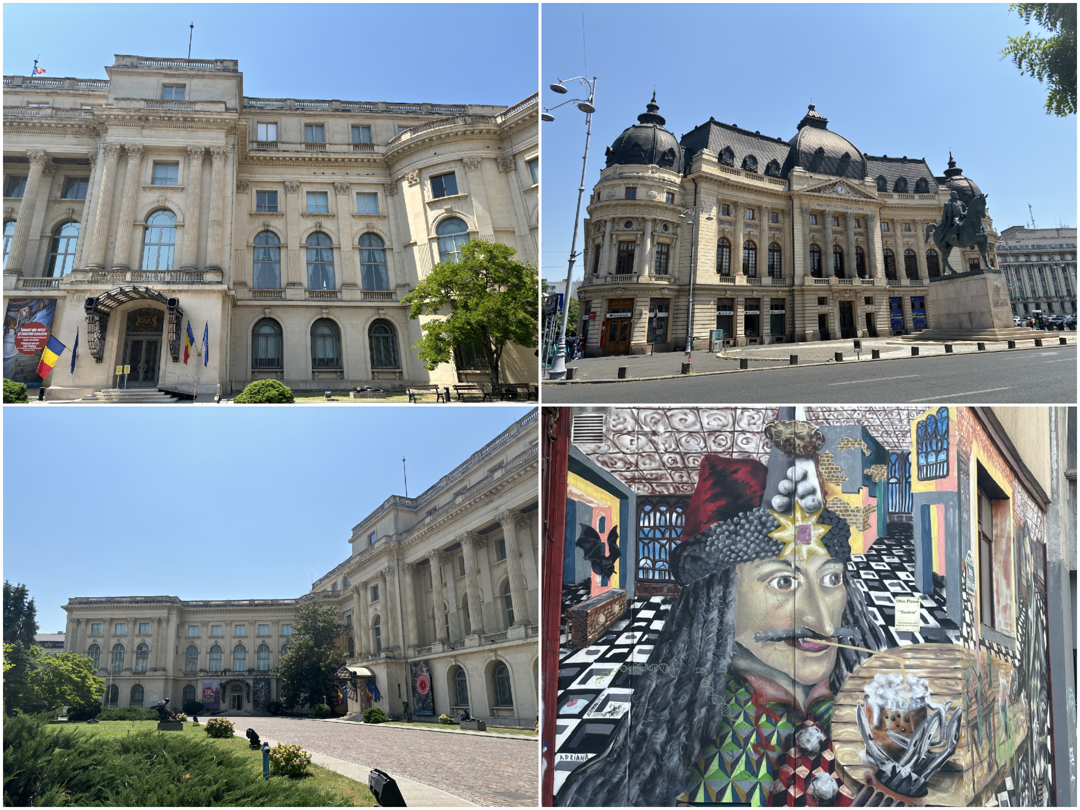 Dopoledne jsme ještě stihly zahrady/park Grădina Cișmigiu s jezírkem a hodinami Ceasul din Cișmigiu a okoukly i budovu místního archívu Arhivele Naționale ale României. Ze zahrad to působilo jako malý palác. Zašly jsme o ulici vedle, než jsme plánovaly a tak jsme se i do katedrály svatého Josefa podívaly, Catedrala „Sfântul Iosif“. V rozpálených uličkách jsme se pomalu směřovaly k ubytování, po cestě jsme uviděly zajímavou malba Drákuly Pictură murală masonică Bram Stoker și Dracula. Minuly jsme i stavbu Ateneul Român, ke které jsme se došly podívat později a také královský palác Palatul Regal din București, který jsme neměly v plánu navštívit. Byl to vážně rozsáhlý komplex, dnes ukrývající muzeum. Na hlavní ulici se tyčil moderní památník Memorialul Renașterii. Představte si ostrý jehlan a na něm napíchnuté cosi, co připomínalo vejce. Nic pro mě. Posledním místem byl kostel Biserica Kretzulescu, který jsme ani v plánu neměli navštívit, ale cesta do praku vedla kolem něj. Malá stavba, kousek od hlavní silnice, klasický pravoslavný kostelík s krásnými zachovalými freskami. Vstupné se dovnitř asi platilo. Ale jen jsme nahlédly. Na návštěvu svatostánku jsme nebyly vůbec správně oblečené a nechtěly jsme někde způsobovat problém. První seznámení s městem proběhlo a už jsme tak tušily, co nás bude následující dny čekat. Zda nás město zklame nebo okouzlí.