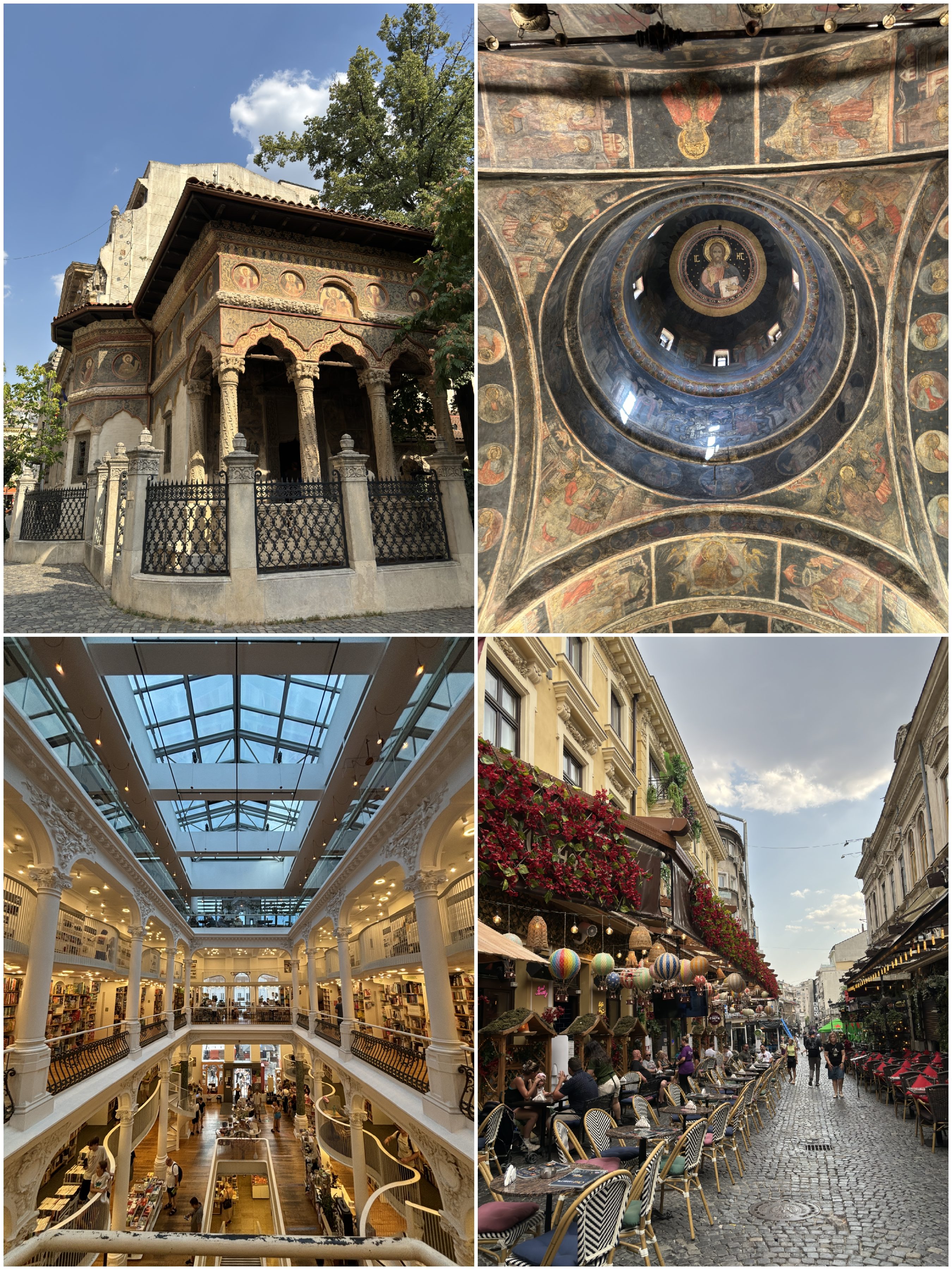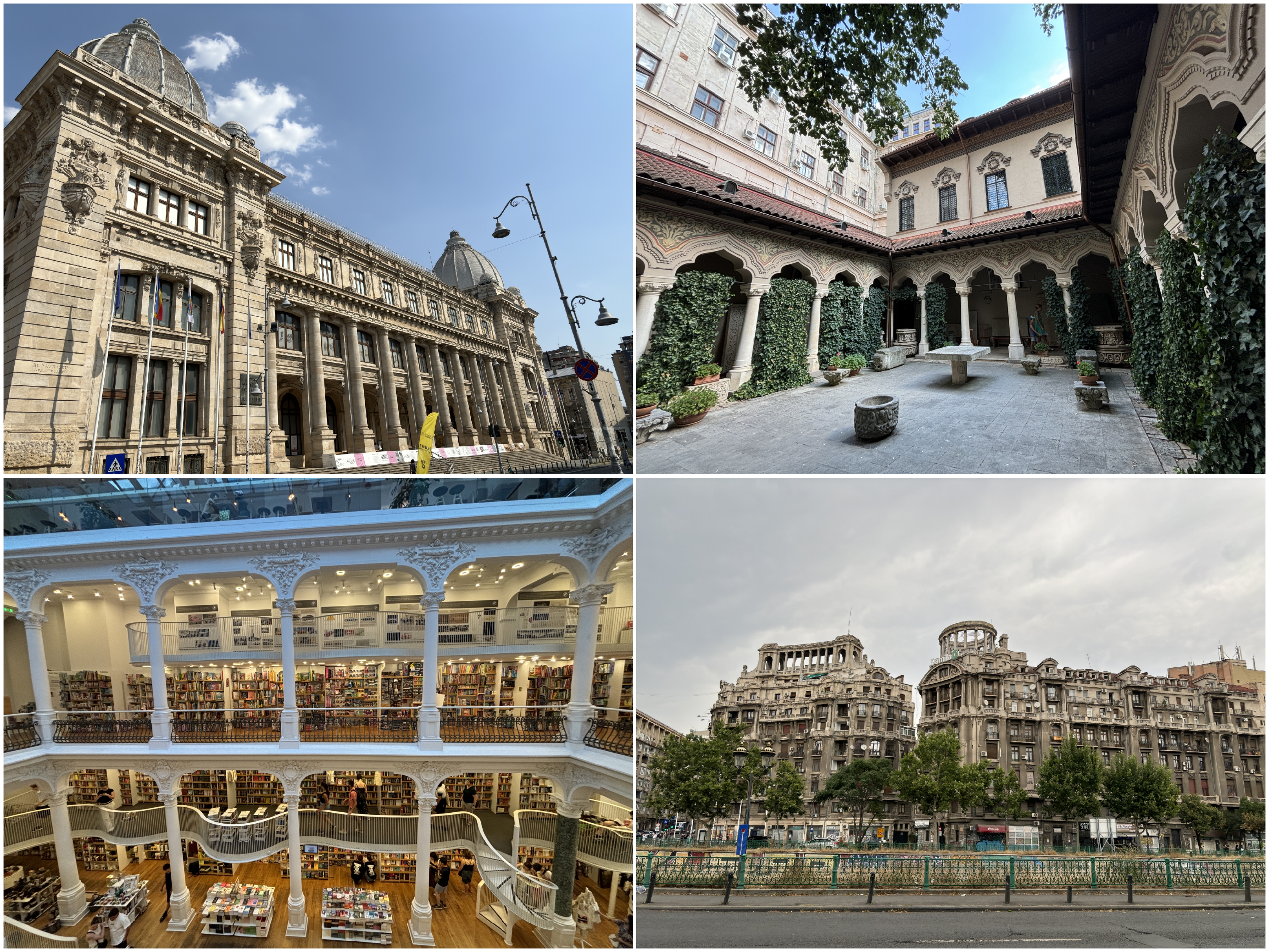 Po odpočinku jsme kolem čtvrté začaly přemýšlet o tom, kde si dáme večeři. Byl započat googlící proces, ze kterého vyšlo pár restaurací. Na základě hodnocení jsme to zvládly zkrouhnout na pouhé tři. Před pátou odpolední jsme se už ploužily rozpálenou ulicí do starého města. Teplota neklesla, ale alespoň stagnovala a tak pro nás byl každý kousek stínu příjemným úsekem cesty. Ale než půjdeme na večeři, ještě si projdeme nějaké památky. Když jsme vyšly na hlavní třídu, do očí nás praštil pravoslavný kostel Biserica „Zlătari“ postavený roce 1635 stavitelem Matei Basarab. Jedná se o cihlový kostel, který nahradil dřívější dřevěný svatostánek. Byl poškozen zemětřeseními v letech 1802 a 1838 poté opravován v 90. letech 20 století. Na hlavní ulici nalezneme i honosnou budovu CEC Bank státní bankovní instituce Rumunska, Casa de Economii și Consemnațiuni. Banka byla založena 1864 a budova se začala stavět v roce 1875. Ihned naproti bankovní instituci se nachází další velmi zdobená budova bývalé rumunské poštovní společnosti. Dnes v ní nalezneme národní muzeum historie rumunského státu, Muzeul Național de Istorie a României. Muzeum bylo založeno v roce 1970 s cílem ilustrovat kulturní vývoj zaznamenaný ve všech historických obdobích.